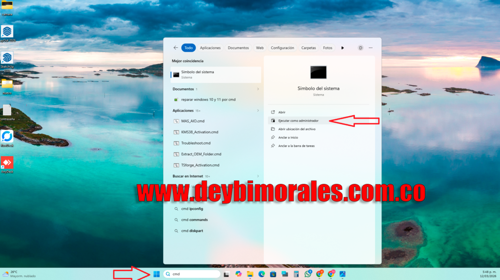 - En el buscador escribir cmd, cuando aparezca, ejecutalo como administrador.